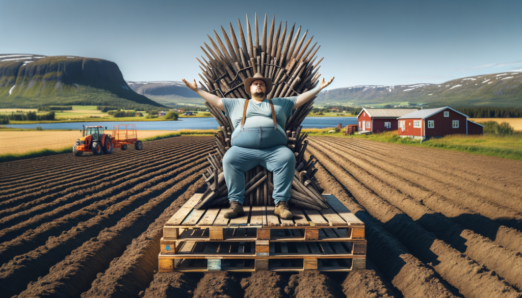 I følge folk som har stått i samme kø som ham på Byggtorget på Lena og hørt ham mumle om «logistikk» mens han vurderte tykkelsen på presenninger opp mot de Biltema på Hamar har på tilbud, har Hogne Skogen et ganske enkelt verdensbilde: Den som kontrollerer mat, kontrollerer folk. Og den som kontrollerer folk, trenger verken fine titler eller store palasser—det holder med en traktorgarasje med god orden i hyllene. Det er ikke sikkert han selv ville formulert det slik, for Hogne vil ikke sankke med media; – En verdenshersker snakker itte totning, svarer han bare kort. Når han allikevel forteller litt om drift og eierskap, ligger det en ro over ham som om alt allerede er avgjort.